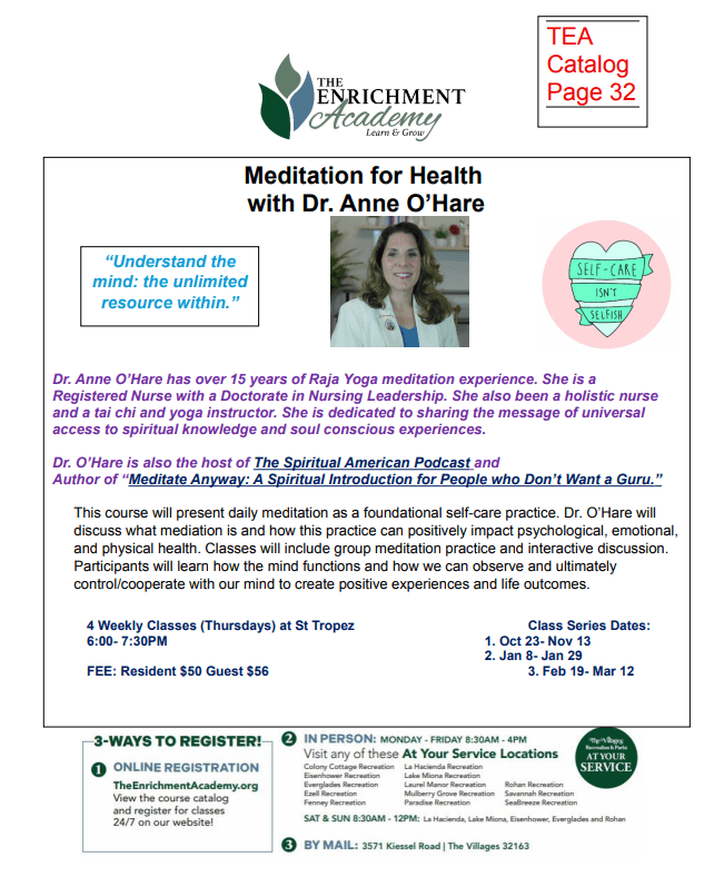 October 14, 2025October 14, 2025 Rosamaria TEA- Meditation for Health Handout Dr. Anne O’Hare Share this: Click to share on X (Opens in new window) X Click to share on Facebook (Opens in new window) Facebook Like Loading... Related