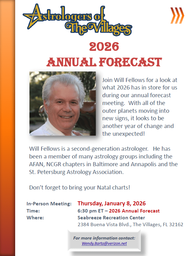 December 22, 2025December 22, 2025 Rosamaria Astrologers of The Villages Share this: Click to share on X (Opens in new window) X Click to share on Facebook (Opens in new window) Facebook Like Loading... Related