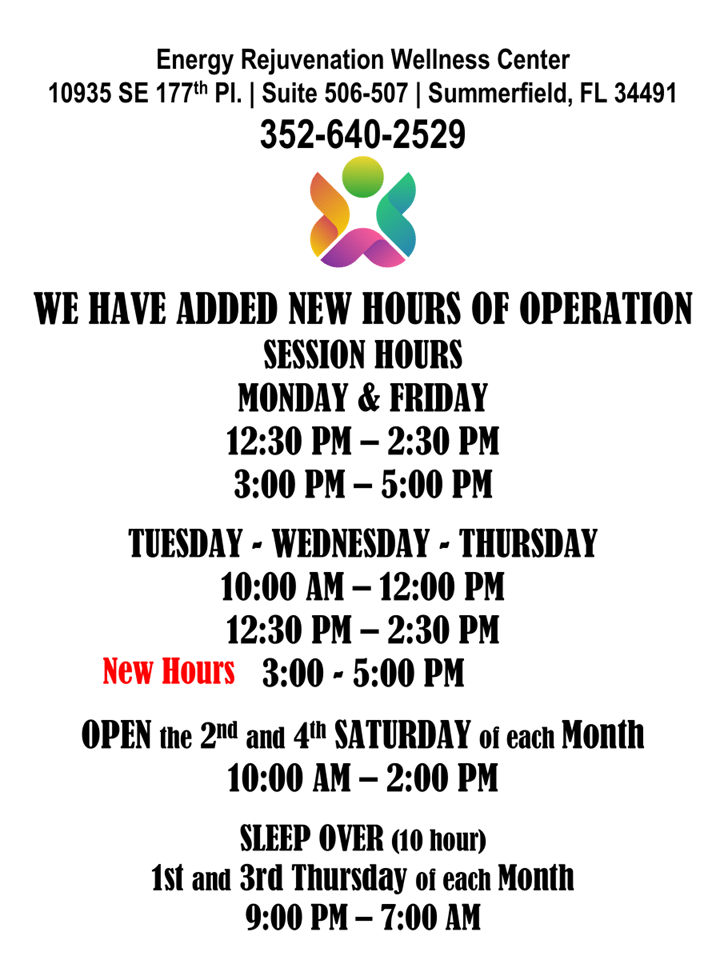 January 9, 2026January 9, 2026 Rosamaria Energy Rejuvenation Wellness Center We Have Added New Hours of Operation Share this: Click to share on X (Opens in new window) X Click to share on Facebook (Opens in new window) Facebook Like Loading... Related