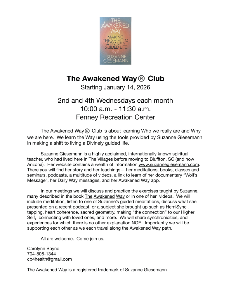 January 25, 2026January 25, 2026 Rosamaria The Awakened Way Club with Carolynn Bayne Share this: Share on X (Opens in new window) X Share on Facebook (Opens in new window) Facebook Like Loading... Related